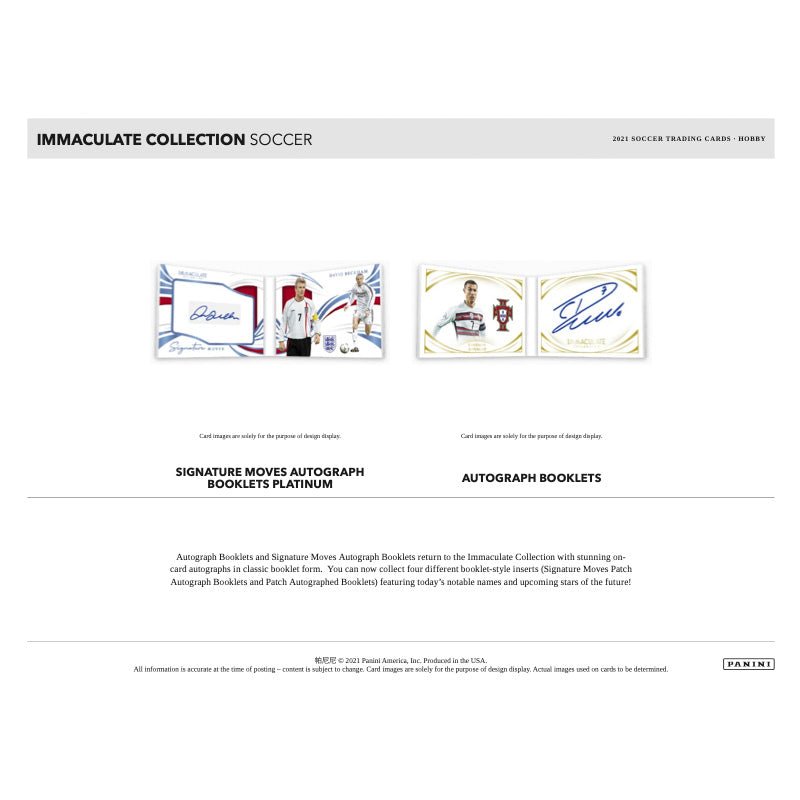 Autograph Booklets and Signature Moves Autograph Booklets return to the Immaculate Collection with stunning oncard autographs in classic booklet form. You can now collect four different booklet-style inserts (Signature Moves Patch Autograph Booklets and Patch Autographed Booklets) featuring today’s notable names and upcoming stars of the future!