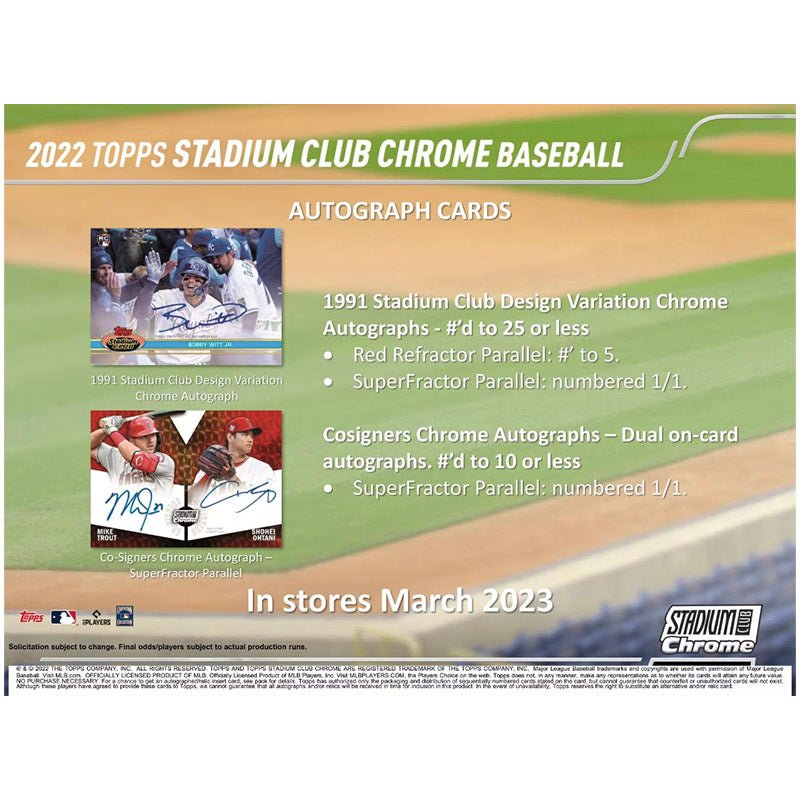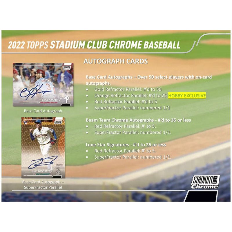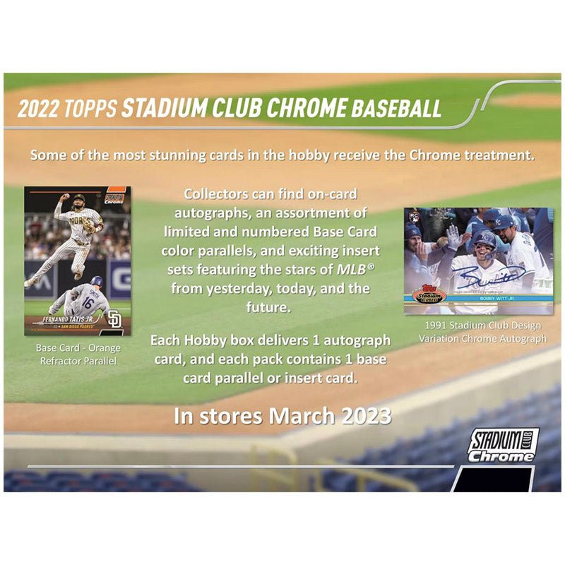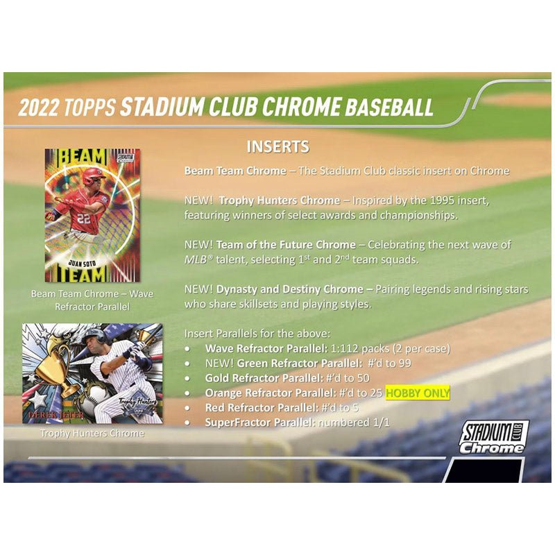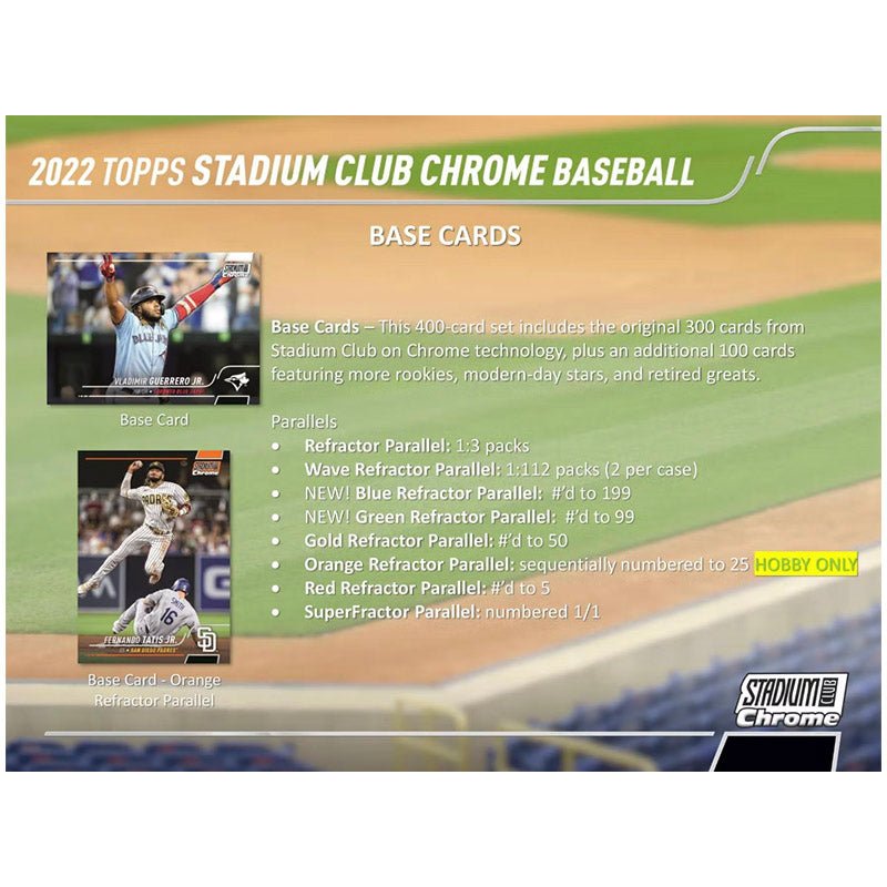 This 400-card set includes the original 300 cards from Stadium Club on Chrome technology, plus an additional 100 cards featuring more rookies, modern-day stars, and retired greats.