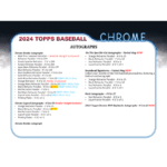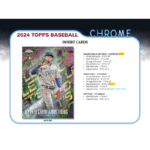 The 2024 Topps Chrome Baseball Hobby Box is back and better than ever, featuring an all-new lineup of the hottest rookies, eclectic inserts, and stunning chrome parallels. This set is perfect for collectors looking to build the entire 300-card base set. Don’t miss the chance to add some shine to your collection with the 2024 Topps Chrome Baseball Hobby Box!