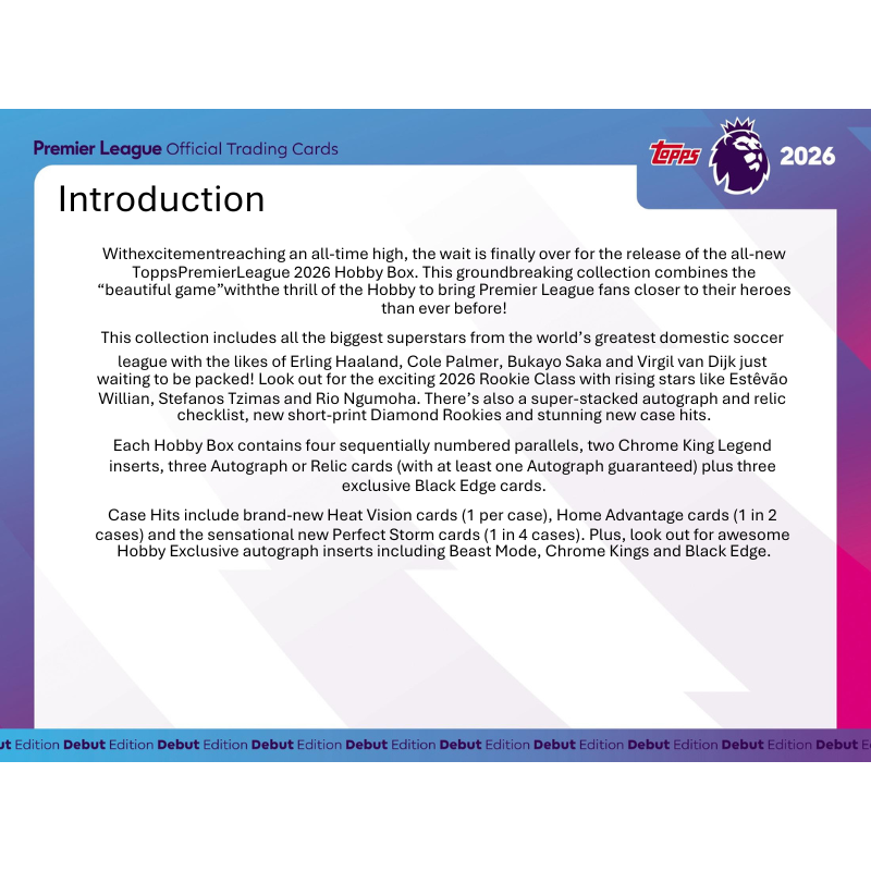 • With excitement reaching an all-time high, the wait is finally over for the release of the all-new Topps Premier League 2026 Hobby Box!