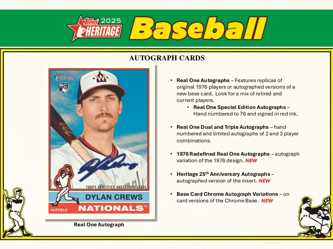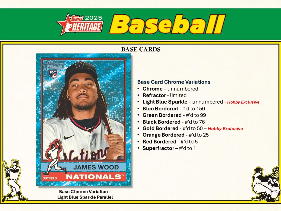 Heritage 25th Anniversary: Each player will be featured on a base design from Heritage years 2001 – 2025 (1952 – 1976). NEW